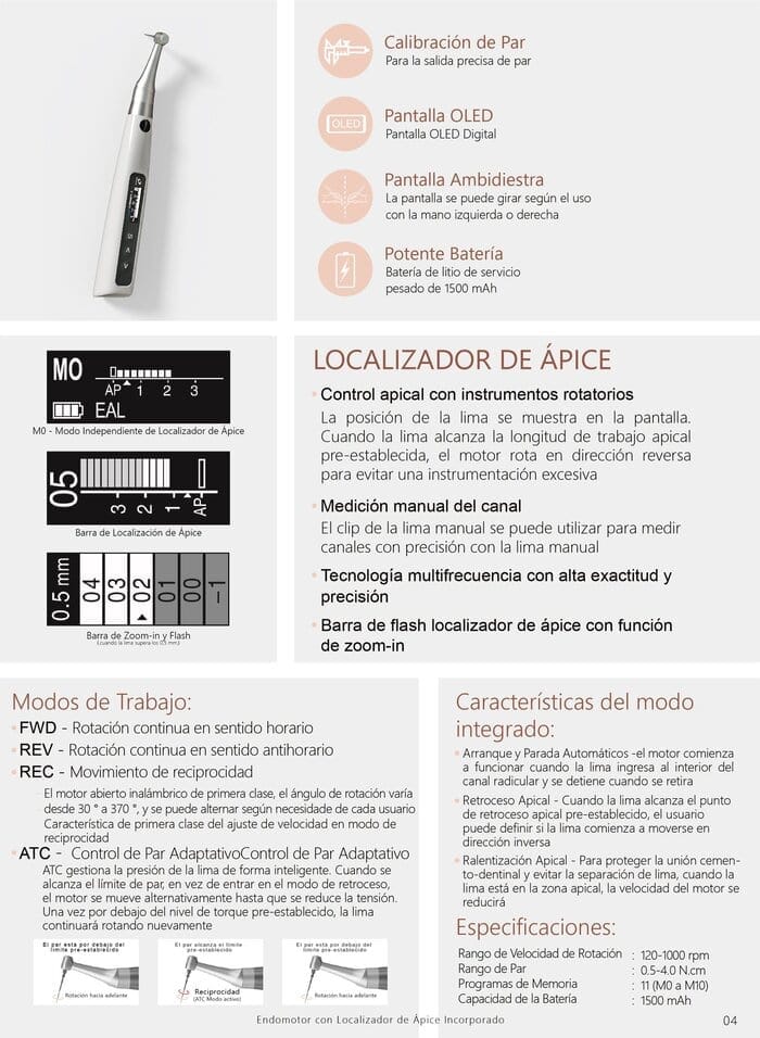 Motor De Endodoncia Inalámbrico Con Localizador de Apice