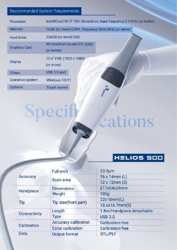 Como uno de los escáneres más precisos del mercado, HELOS 500 ha alcanzado el nivel de precisión más moderno: la desviación promedio de un escaneo de arco completo in vivo es de alrededor de 20,0 μm.