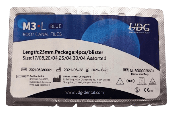 Contenido 4 limas Niti blue por blister Secuencia: 17/08 20/04 25/04 30/04 25 MM
